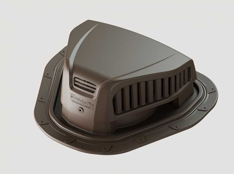 Приглушенный благородный оттенок хорошо сочетается с коричневой и серой цветовой гаммой. Аэратор подходит для установки на кровли, покрытые однотонной мягкой черепицей и гонтами с эффектом градиента.