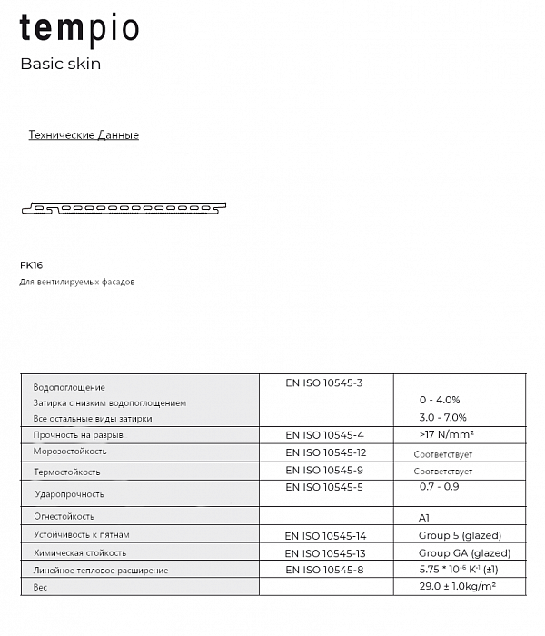 Керамическая плитка для вентилируемого фасада, система FK16, Tempio