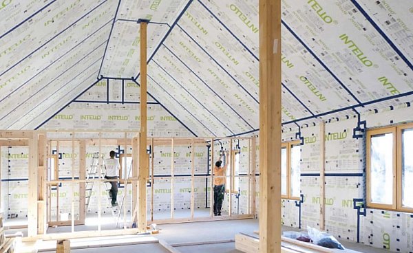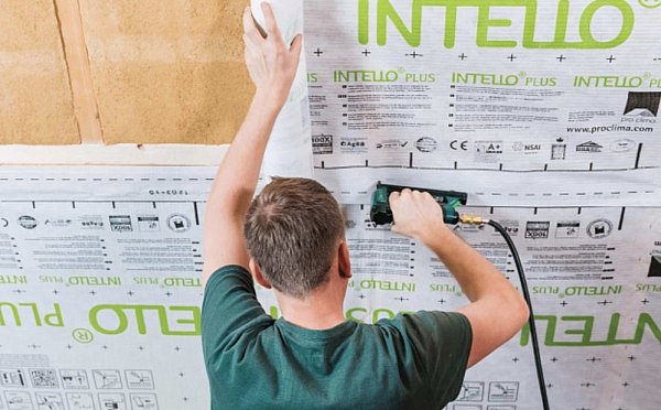 Во-вторых, важно правильно выбрать клей и ленты для крепления мембраны. Рекомендуется использовать продукцию Pro clima, которая специально разработана для работы с INTELLO PLUS и обеспечивает максимальную герметичность и долговечность соединений.