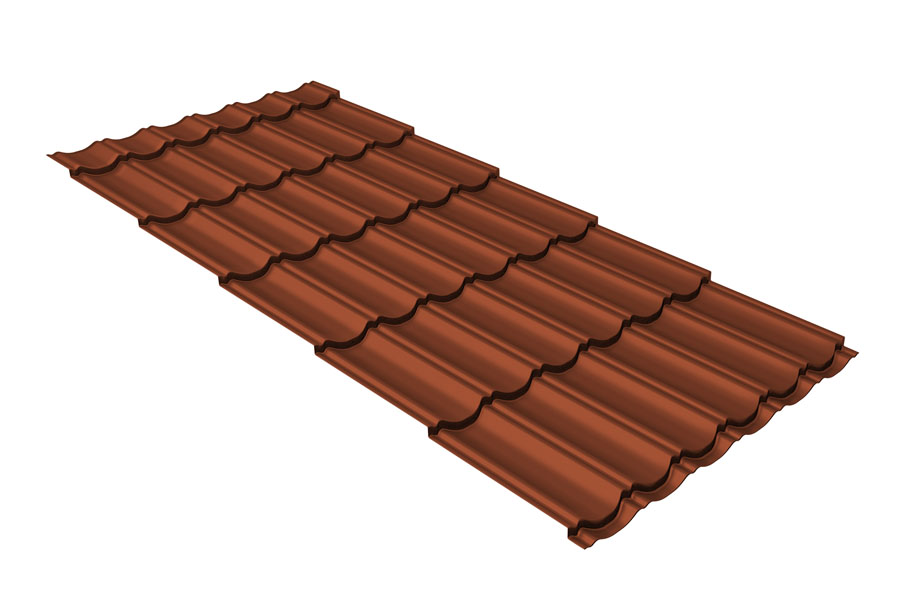 Металлочерепица Grand Line Kvinta Юг (Квинта Юг) 0,5 PurLite Matt RAL 8004 терракота