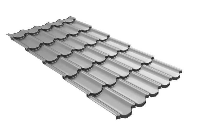 Металлочерепица Grand Line Kvinta plus (Квинта Плюс) 0,45 Полиэстер RAL 9006 Бело-алюминиевый | c 3D резом
