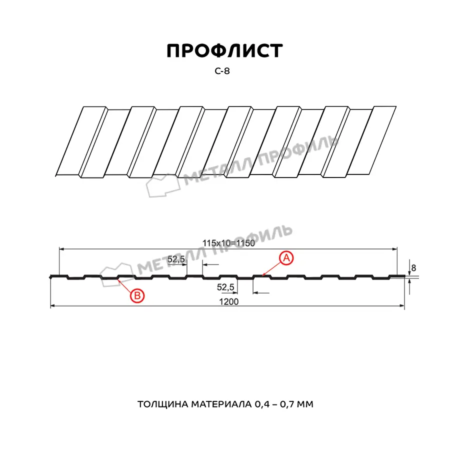 Профлист Металл Профиль С-8 0,6 Цинк Бесцветный | A - это высококачественный строительный материал, предназначенный для использования в различных строительных проектах. Он изготовлен из прочного металла, обработанного цинком, что обеспечивает ему долговечность и защиту от коррозии. Профиль С-8 имеет оптимальные размеры и форму, что облегчает его монтаж и установку. Благодаря бесцветному цинковому покрытию, данный профлист выглядит эстетично и привлекательно. Он идеально подходит для использования на крышах, фасадах зданий, заборах и других конструкциях. Профлист Металл Профиль С-8 0,6 Цинк Бесцветный | A - надежный и долговечный материал, который поможет создать красивое и надежное строение.