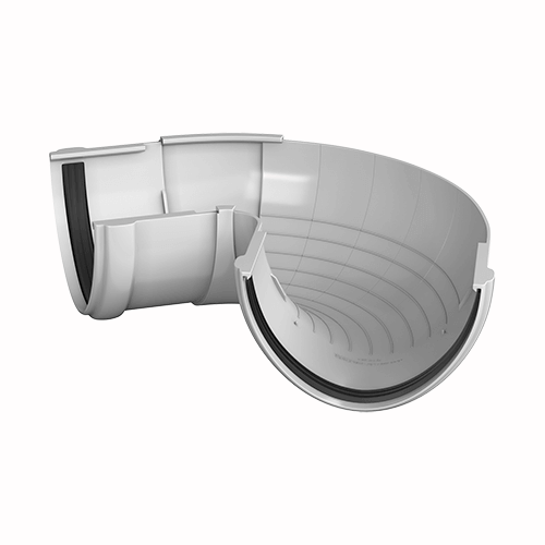 Регулируемый угол желоба ТЕХНОНИКОЛЬ – это доборный элемент пластиковой водосточной системы ТЕХНОНИКОЛЬ, выполненный из поливинилхлорида. Угол предназначен для соединения желобов под углом, например, на вальмовых скатных кровлях.